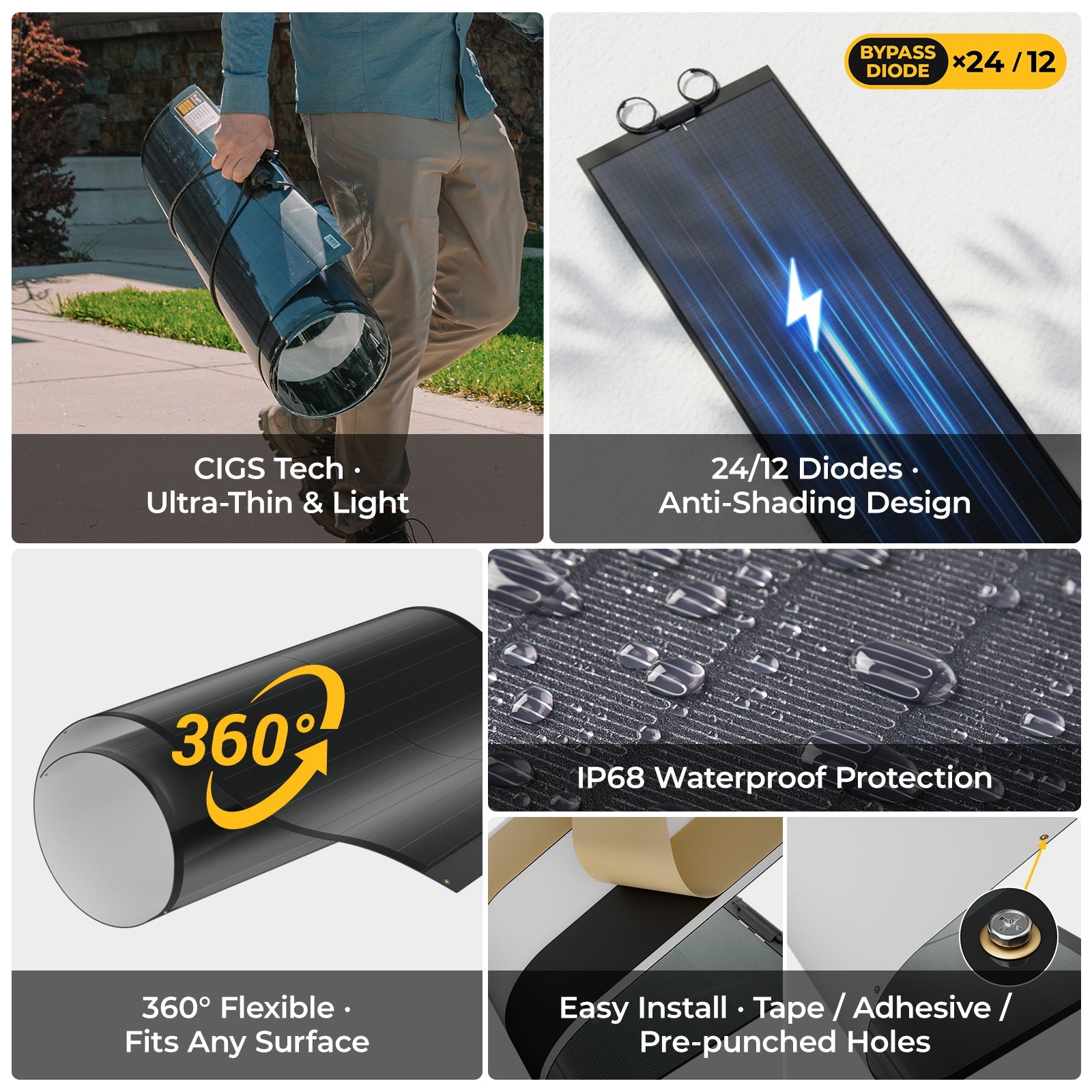 BougeRV Yuma 100W CIGS Thin-film Flexible Solar Panel with Tape (Long Version) – Solar Panels