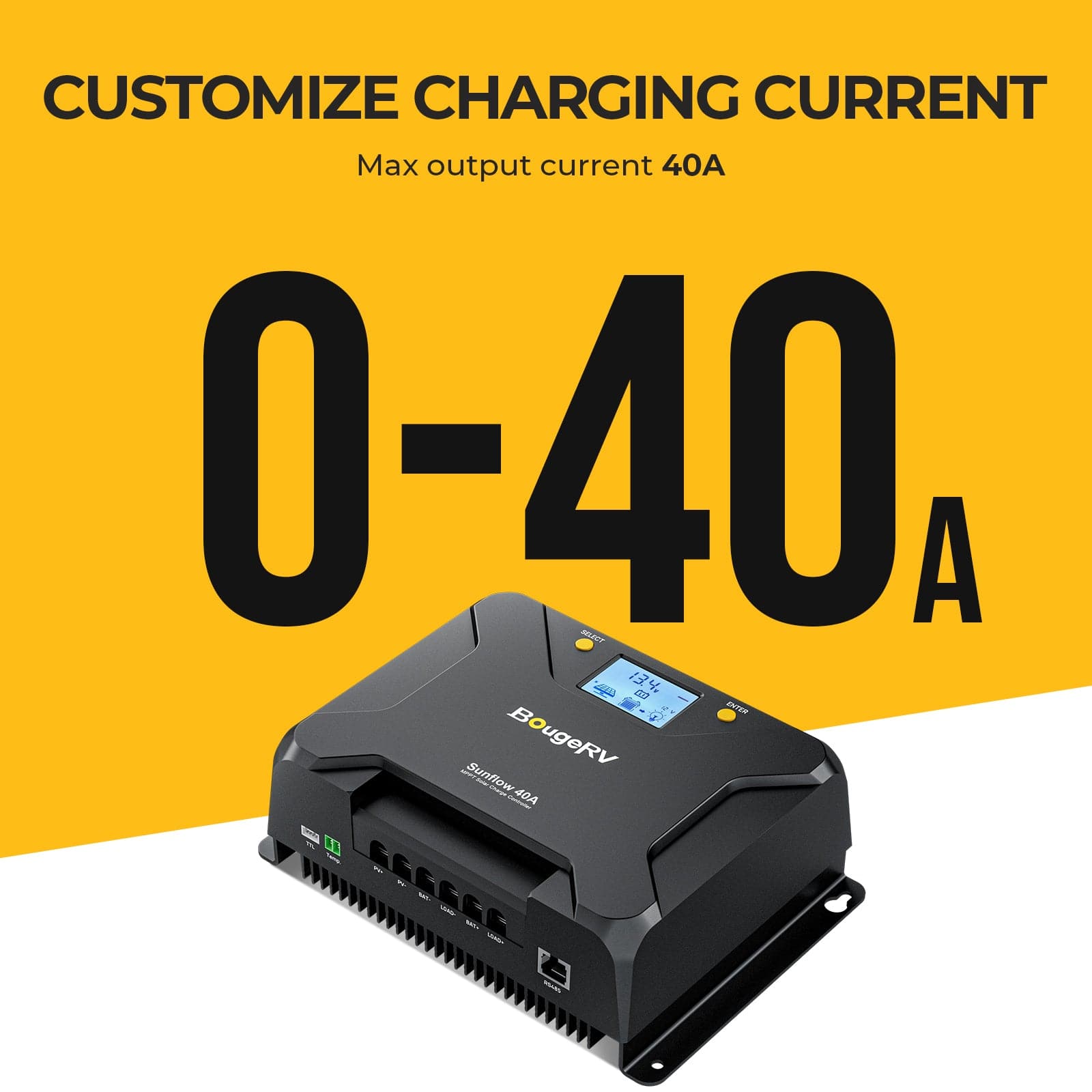 • 40A MPPT charge controller maximizes power conversion, adjusts for cloudy or variable sunlight, and supports both 12V and 24V systems seamlessly.