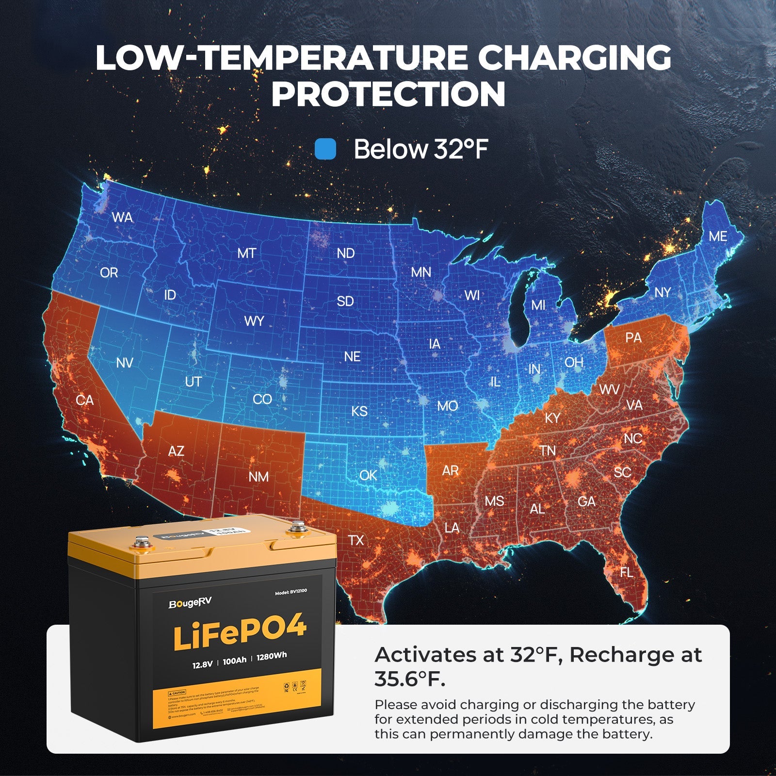 • Battery Storage: 2 x 12V 100Ah Group 24 LiFePO4