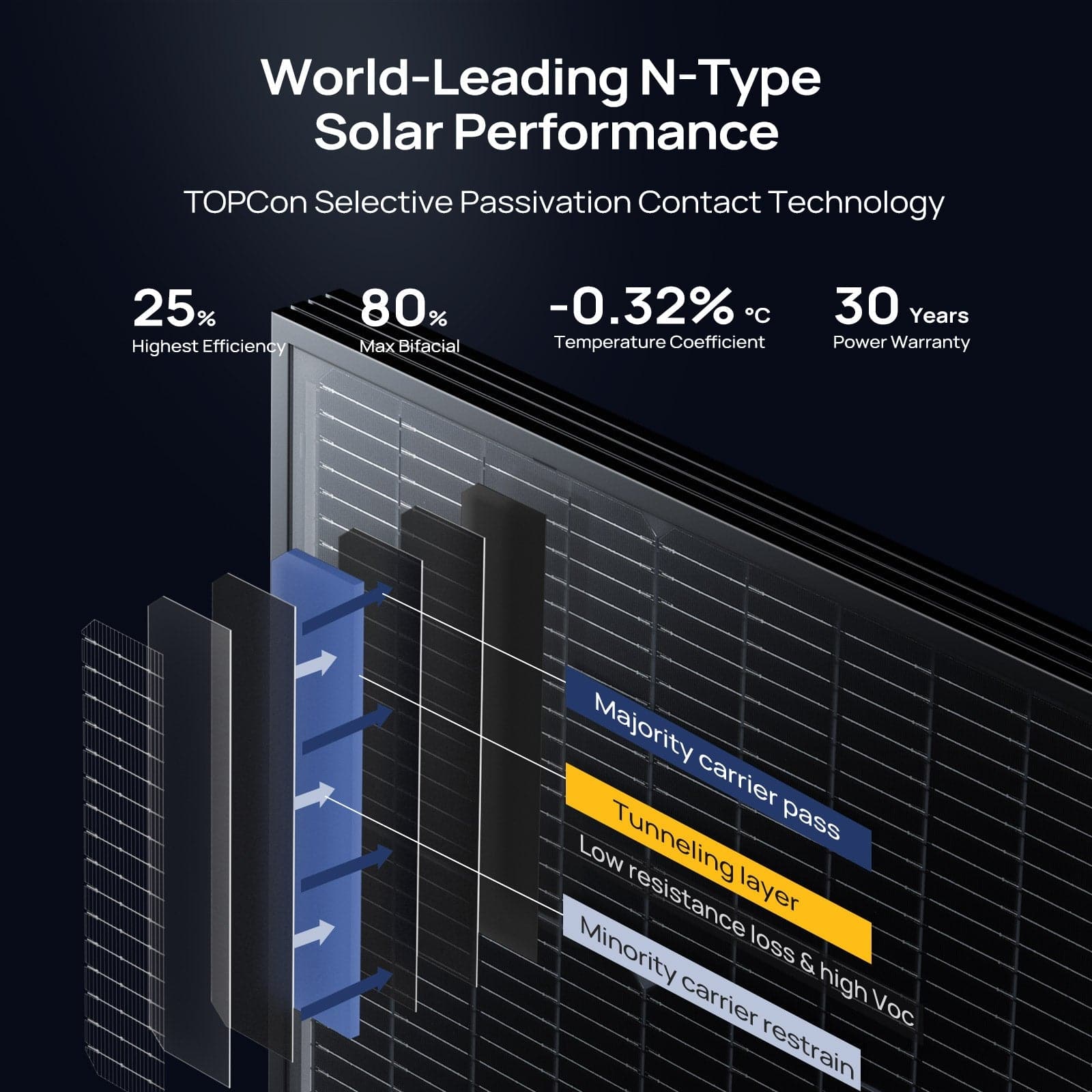 • Solar Panel Type: 16BB N-Type 200 Watt Bifacial (2 units)