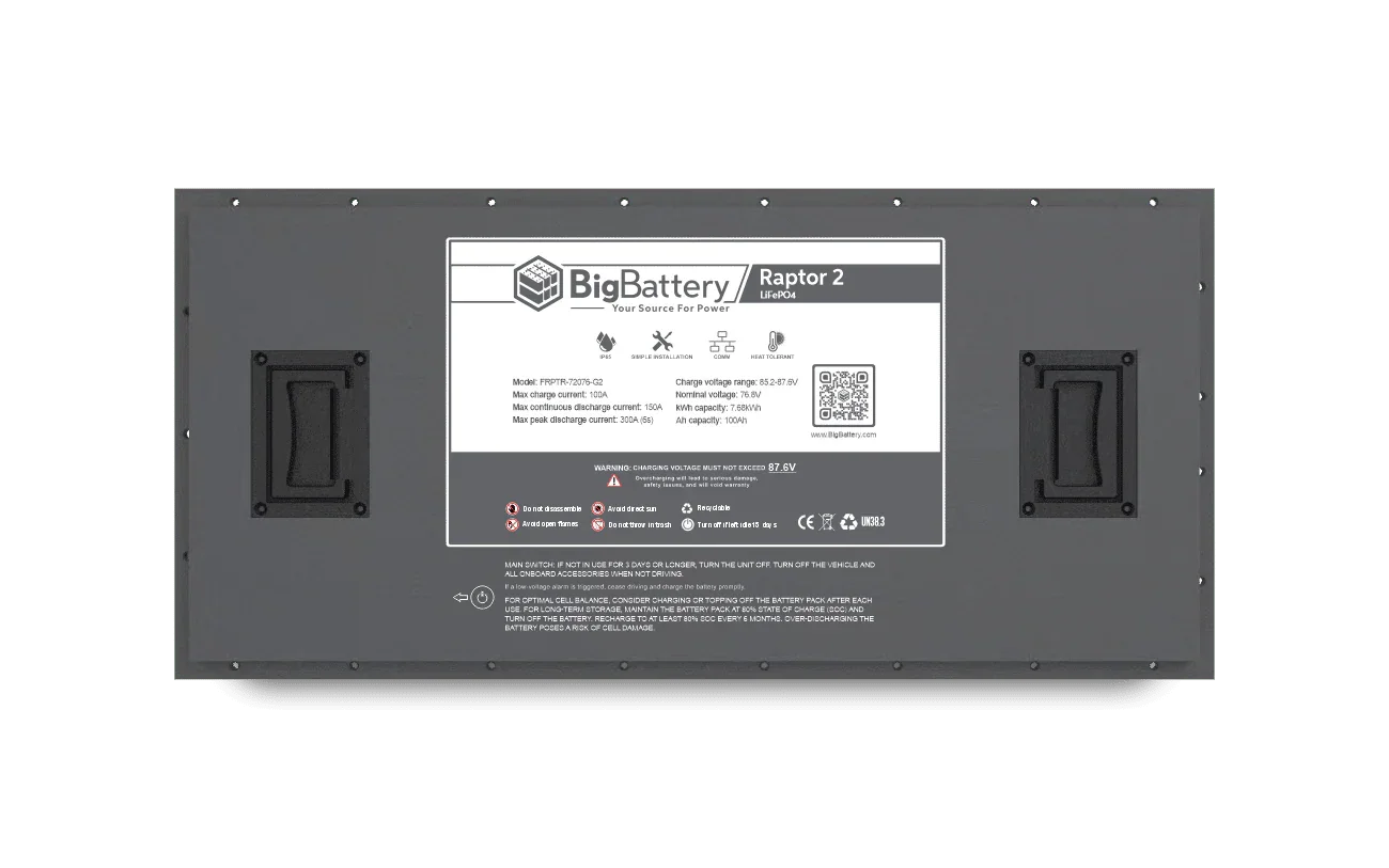 BigBattery’s all-new 72V LiFePO4 RAPTOR 2 is a game-changer when it comes to powering your high-voltage golf carts, transport vehicles, and industrial equipment, packing 7.68 kWh of capacity in a highly durable, energy-dense form factor.