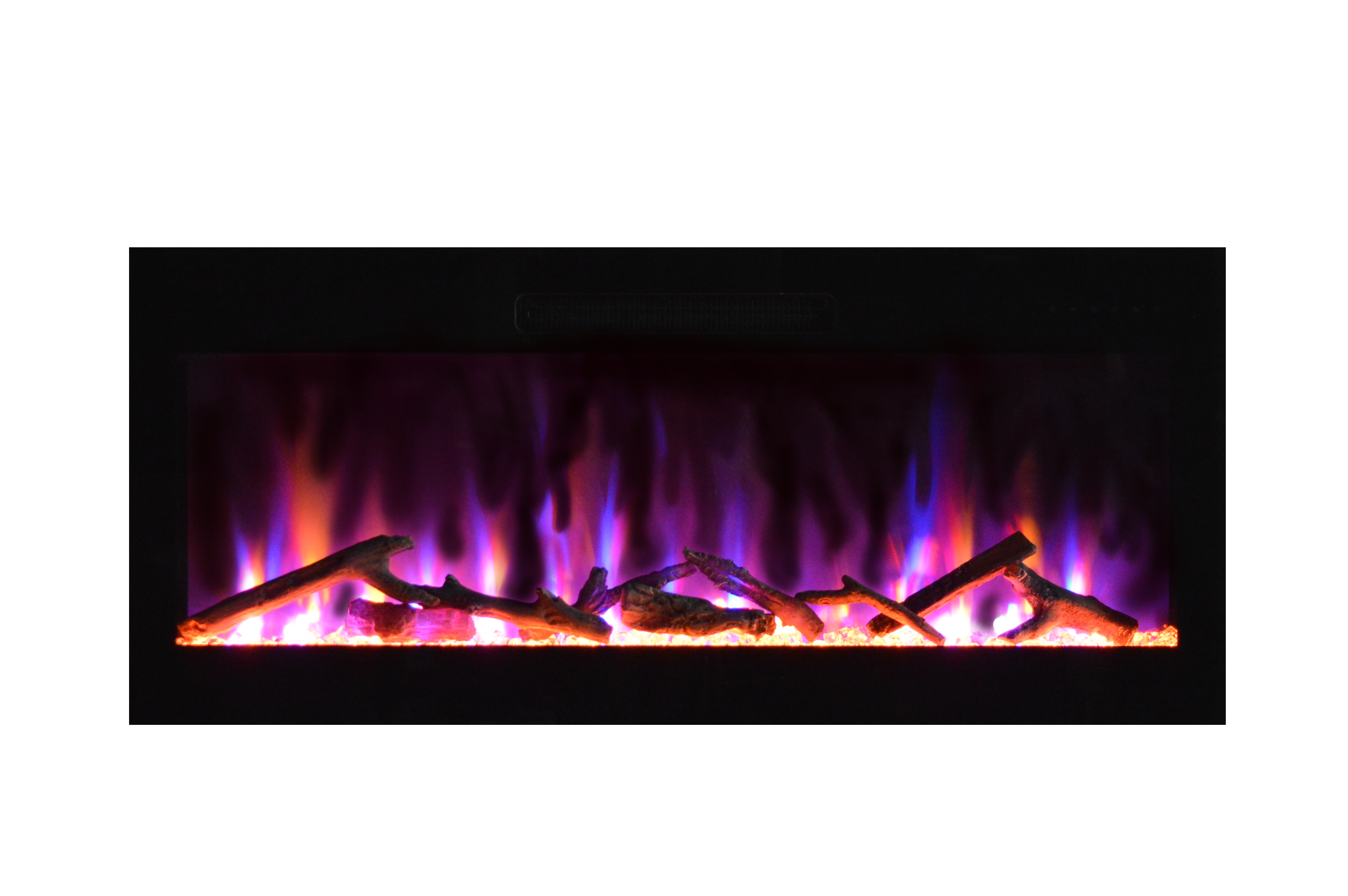 • The black, nearly frameless design of this modern linear electric fireplace creates a minimalist look that complements your décor while enhancing the visual appeal of the flames.