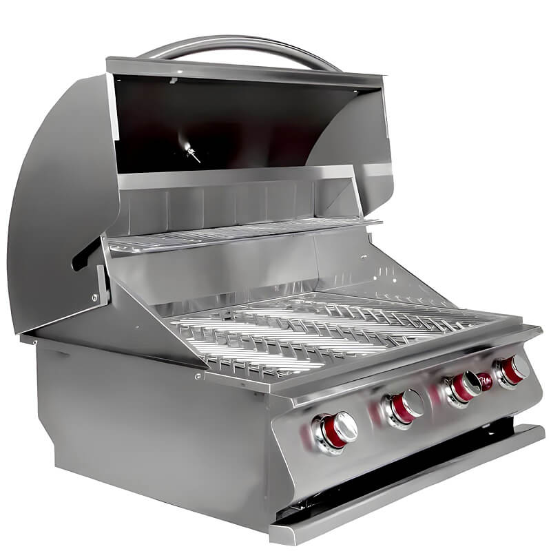 This grill can fit right into a Cal Flame BBQ island or cart and makes your outdoor kitchen look clean and pro. Its high BTU power and lots of upgrade options mean it can handle everything from quick burgers to big feasts. The Cal Flame G Series 32-inch grill is built strong, cooks great, and makes grilling fun.
