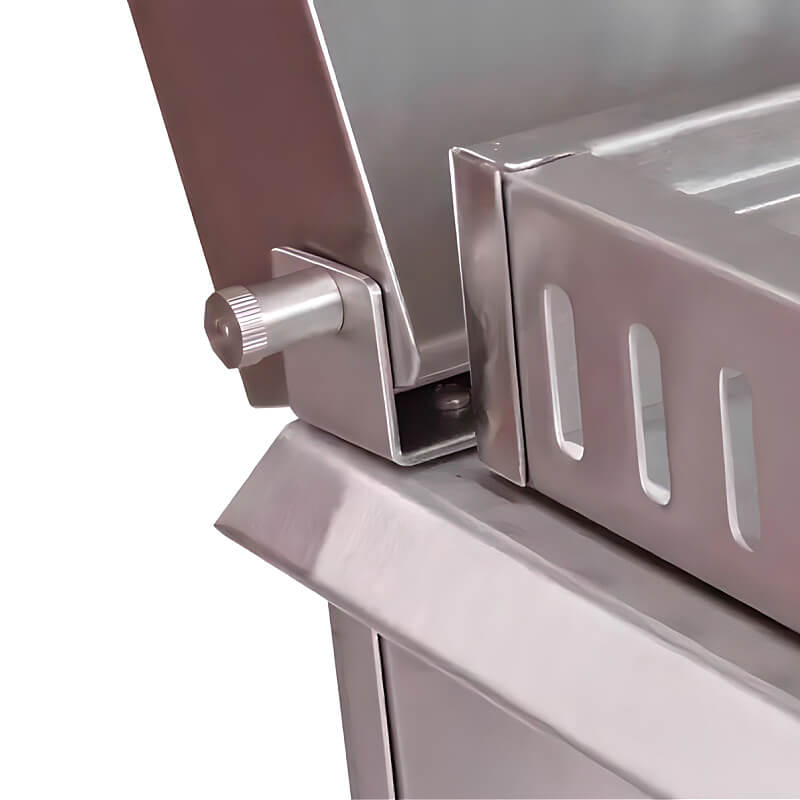 It has a guard around the burners to keep you safe and help stop spills. The shiny metal knobs are easy to turn and feel good in your hand. The flat design saves space on your counter, and the cover keeps everything clean when you’re not grilling.