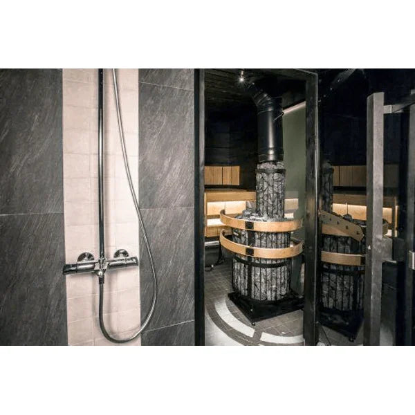 If you are looking for the ultimate sauna experience, look no further. The Harvia Legend 300 Duo is perfect for heating your sauna from outside or another room. The black steel frame shows off the abundant amount of stones that provides good heat even if the fire dies down. The grate frame also gives the stove a longer lifespan.