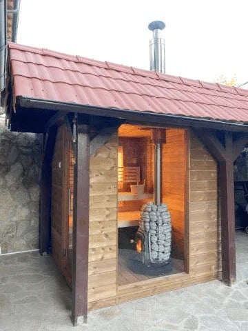 This HUUM thru-ceiling sauna wood stove chimney set is designed to extend straight up through the ceiling and is compatible with all HUUM's wood-fired sauna stoves. This premium set includes everything needed to provide your sauna experience with both beautiful form and safe-minded function.