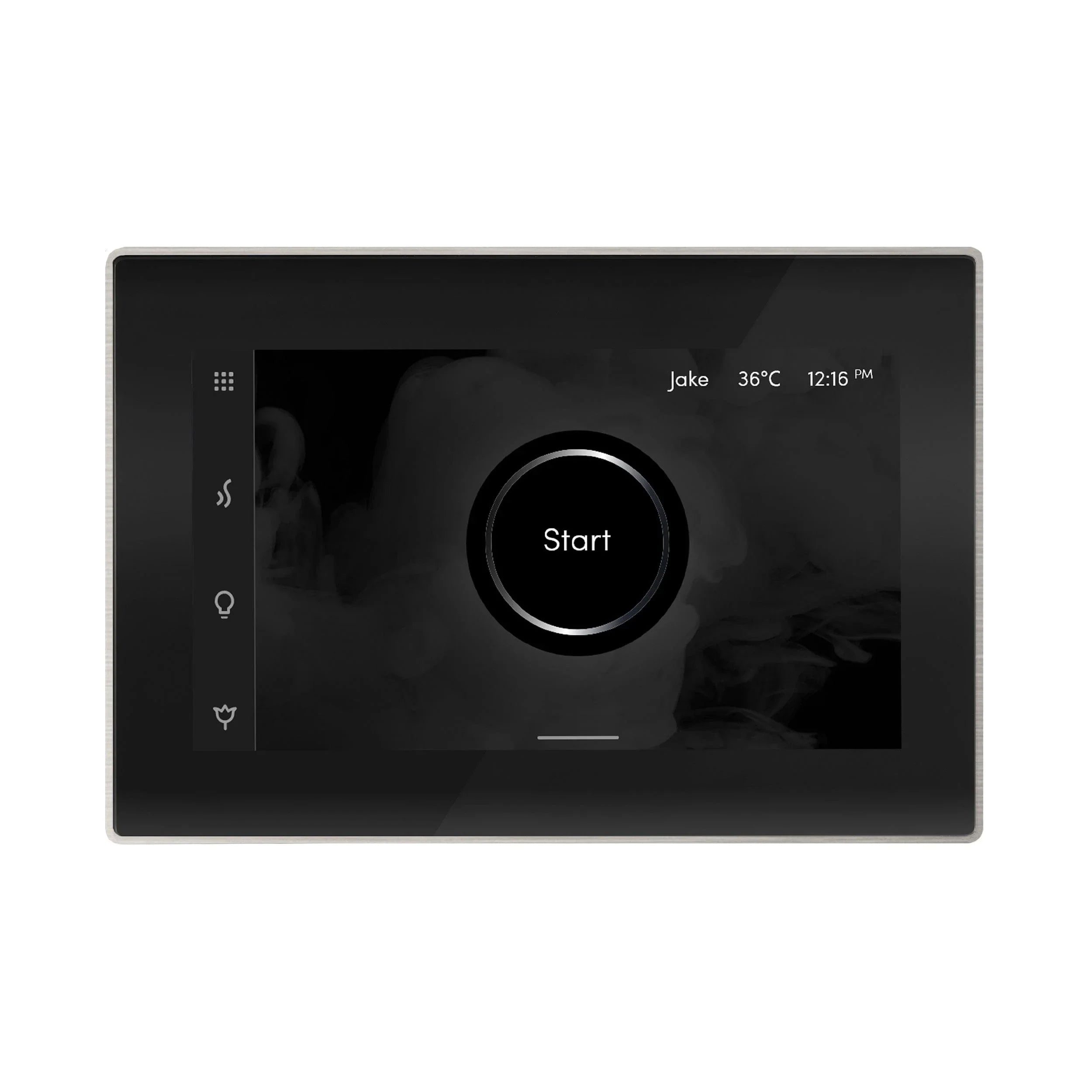 Welcome the ultimate shower experience, the Bliss Package. The bliss package is a curated collection of the finest steam systems and shower experiences available. Anchored by the sophisticated and intuitive iSteamX, along with Chroma, Aroma, and Music Therapy systems, AromaGlass Steam Head, AutoFlush system, Condensation Pan, and now completely blissful with the addition of the innovative SpaH2O electronic shower valve.