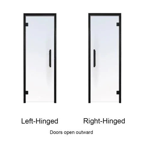 Stylish vertical door-pulls match your choice of wood feature Stainless Steel outer handles, while the inner handle is crafted of wood to ensure that it remains comfortable to the touch in a hot sauna. All doors include robust Aluminum hinges that compliment the color of the wood frame.
