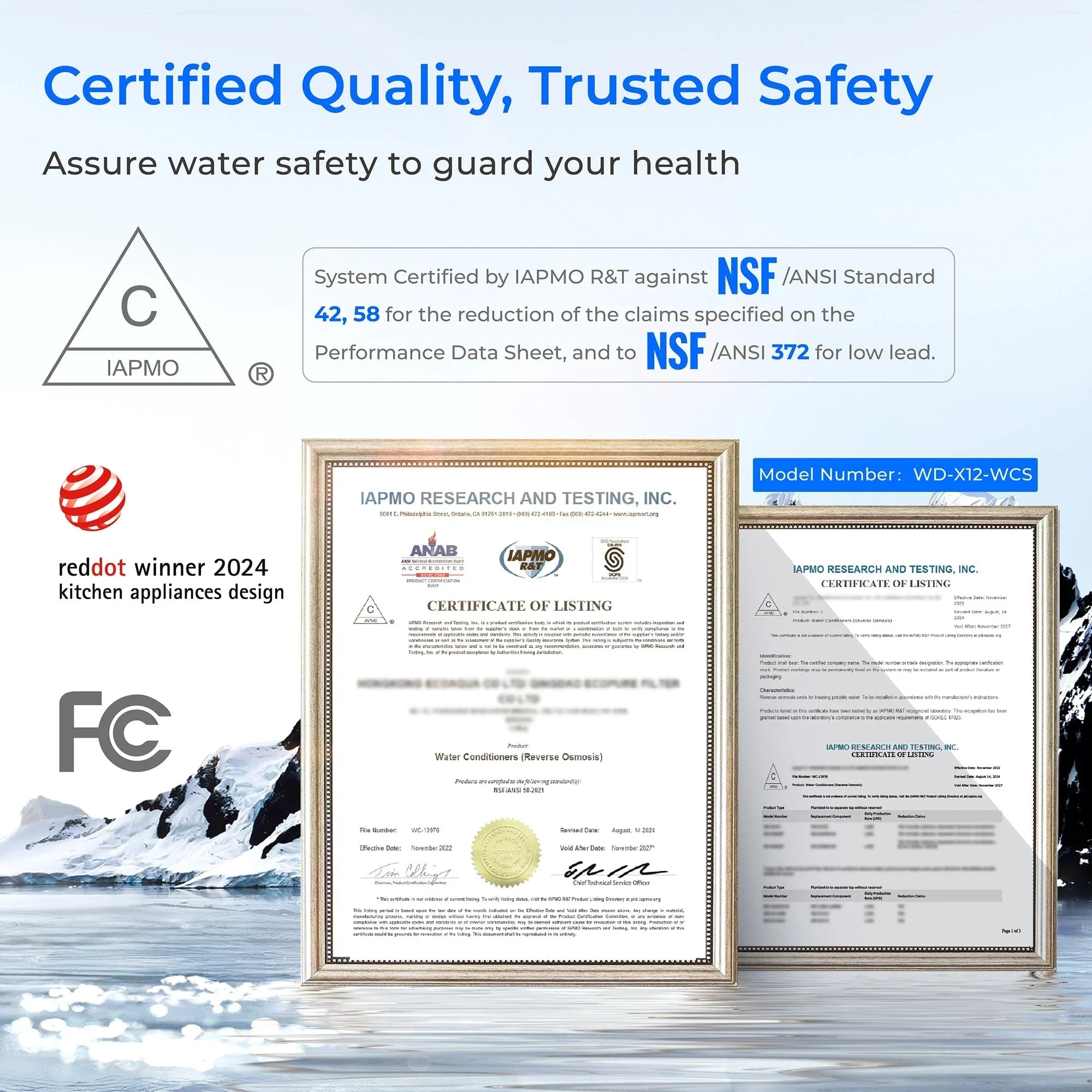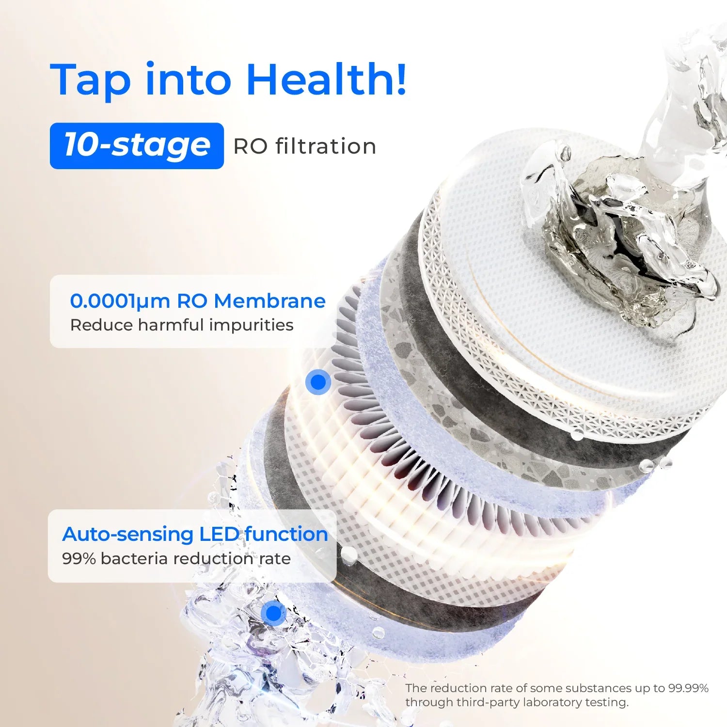 • 12-Stage Composite Filtration – Effectively removes TDS, heavy metals, chlorine, PFAS, pesticides, microplastics, and more.