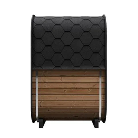 Premium quality materials are evident everywhere on Cube-Series Saunas. The exterior wood is made from durable full-length staves that have been organically thermally enhanced. This Thermo-Spruce wood is stronger, more dimensionally stable, naturally resists decay and pests, and will far outlast conventional wood. A complete shingle kit with drip rails ensures superior water management and a dry interior. The bronze-tinted 8mm thick front door is both beautiful and tempered for your safety.