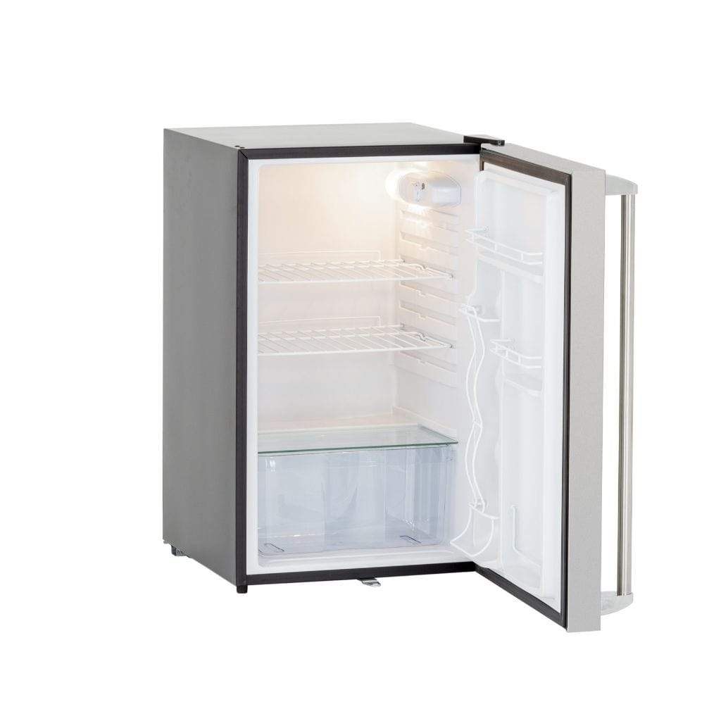 Bring the convenience of cold storage and matching sleek design to your outdoor kitchen with the New Summerset Deluxe Refrigerator. Featuring an attractive #304 stainless steel door with Summerset handle for a smooth and lustrous finish, this appliance will elevate the space with form and beauty. With durable construction for the outdoors, temperature control, and a sealed back for energy efficiency, the 4.5 cubic feet of storage and adjustable wire shelves will keep you from making repeated trips indoors while entertaining. The locking stainless steel door allows you to stock up on ice-cold refreshments, store cold ingredients or deserts, and protect marinating meat from the elements. Customizable to your space, the door is also reversible to best fit your workflow and setup. With adjustable legs for leveling, rear venting, and a limited lifetime warranty, the New Summerset Deluxe Refrigerator brings the function of your indoor refrigerator to your outdoor kitchen with matching performance and design.